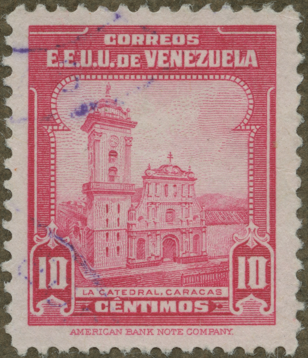 Frimärke från Venezuela, 1943 Motiv av katedralen i Caracas.