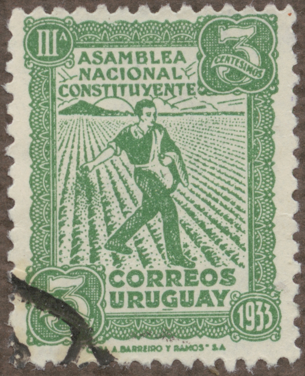 Frimärke från Uruguay, 1933. Motiv av Såningsman -Minne av tredje Republikens konstituerande: 1933-