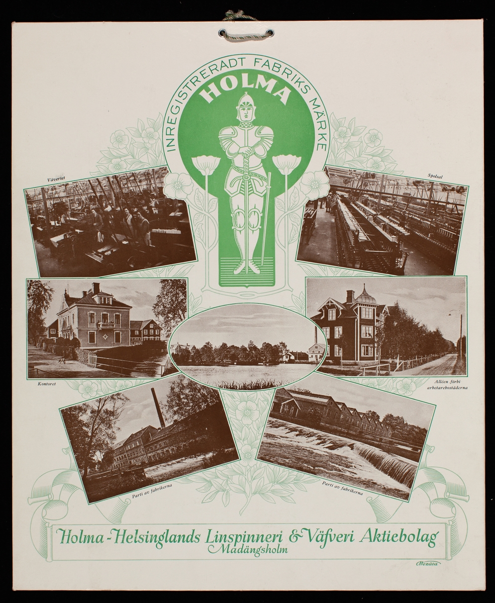 Reklamaffisch för Holma- Helsinglands Linspinneri & Väfveri AB.