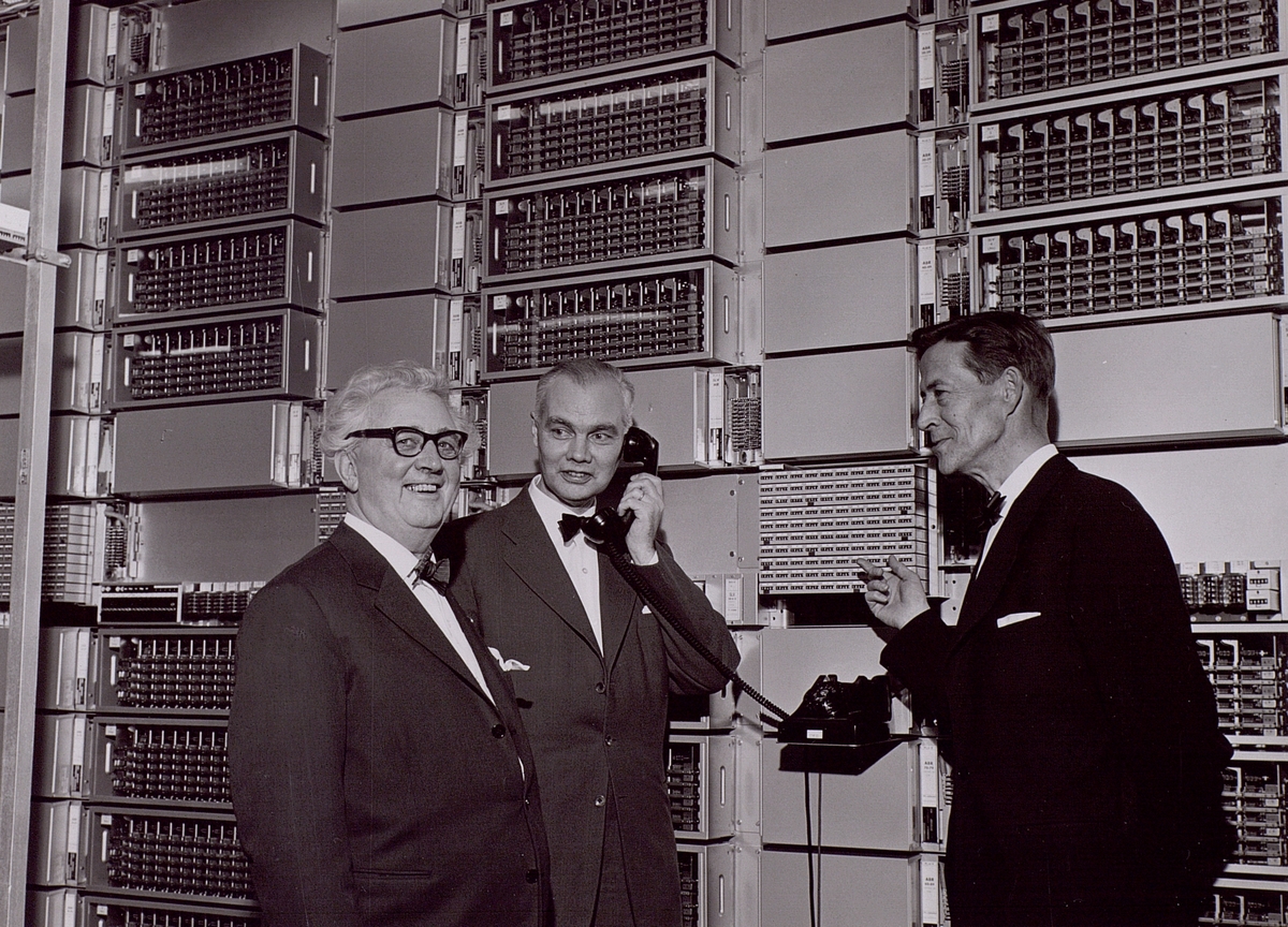 Falun 1961. Telekommissarie Laufke, överkontrollör Liljefors, förste sektionsingenjör Kvist.