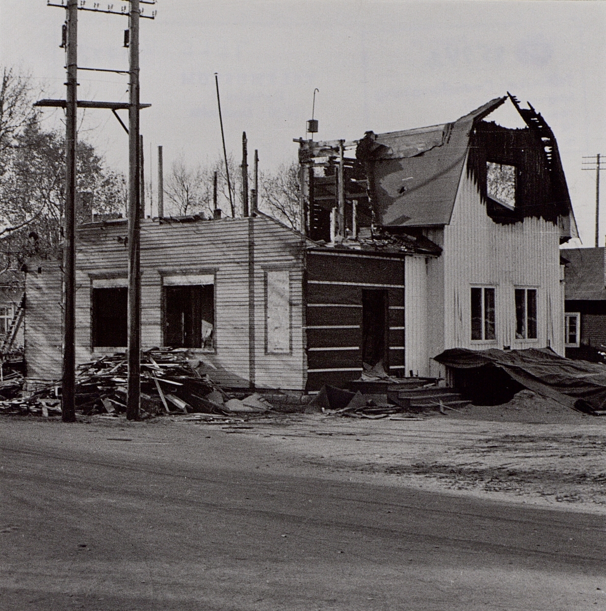 Bureå telefonstation Den eldhärjade telefonstionen 1949. Exteriör.
