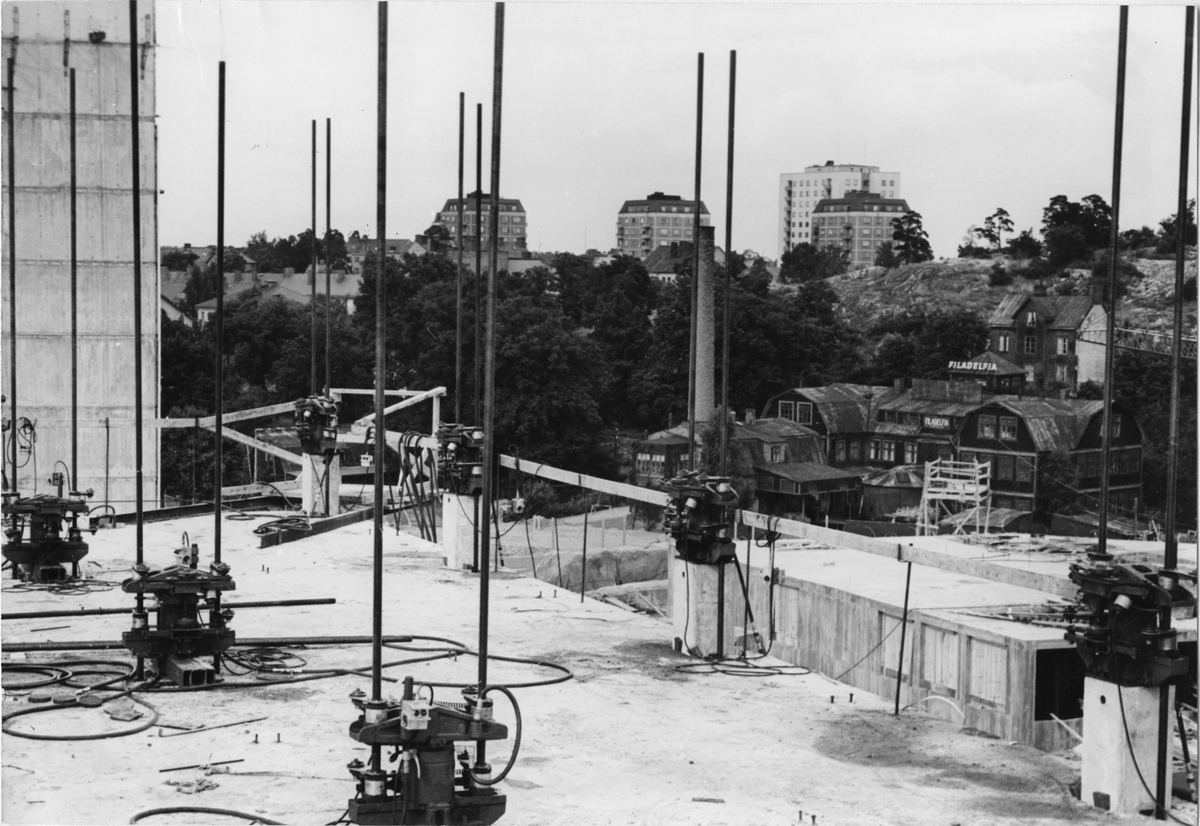 Lyftanordningar för Lift Slab-metoden är placerade på pelartopparna. Varje lyftare har en lyftkraft av ca 70 ton och lyftarna är synkroniserade så att lyftningen av bjälklagen sker absolut jämn.