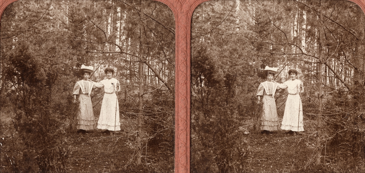 Stereobild. Två kvinnor vid Kohlsva Bruk.