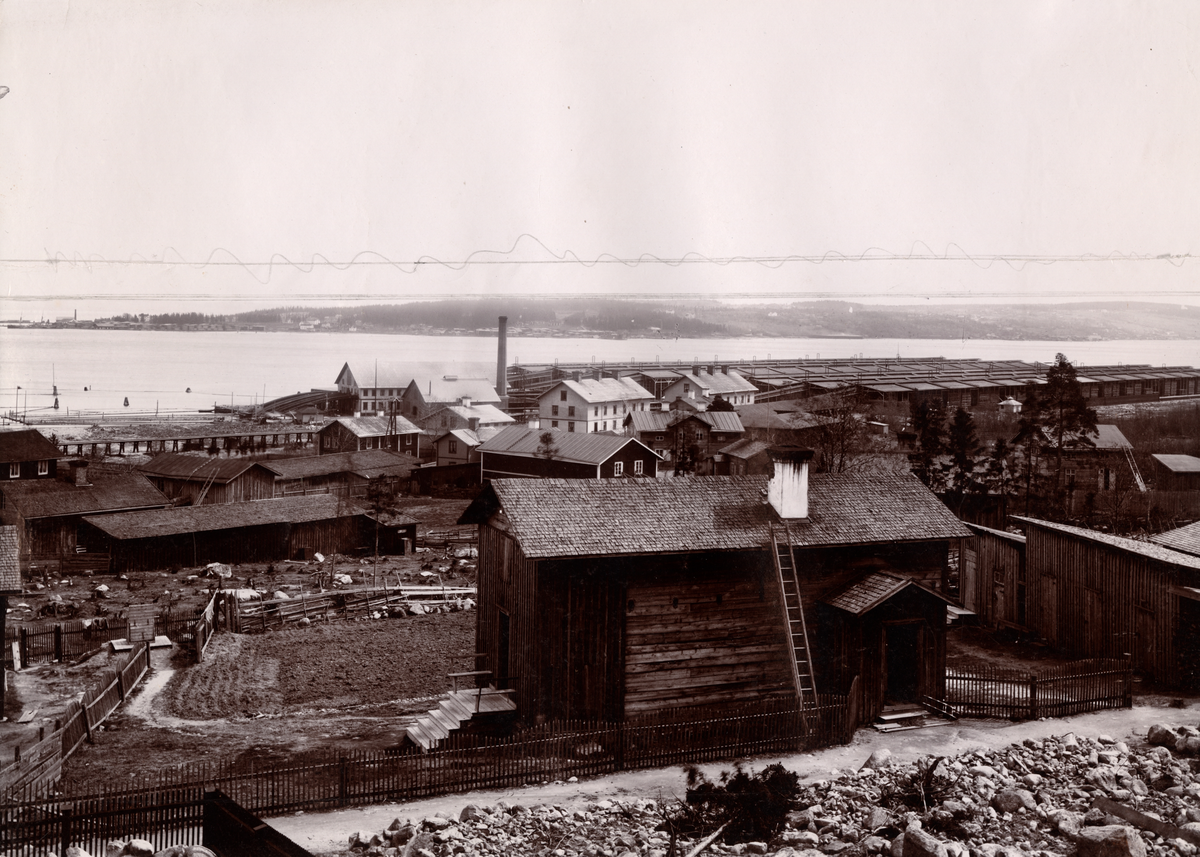 Östrands sulfatfabrik i Medelpad. Sågverket vid Indalsälven.