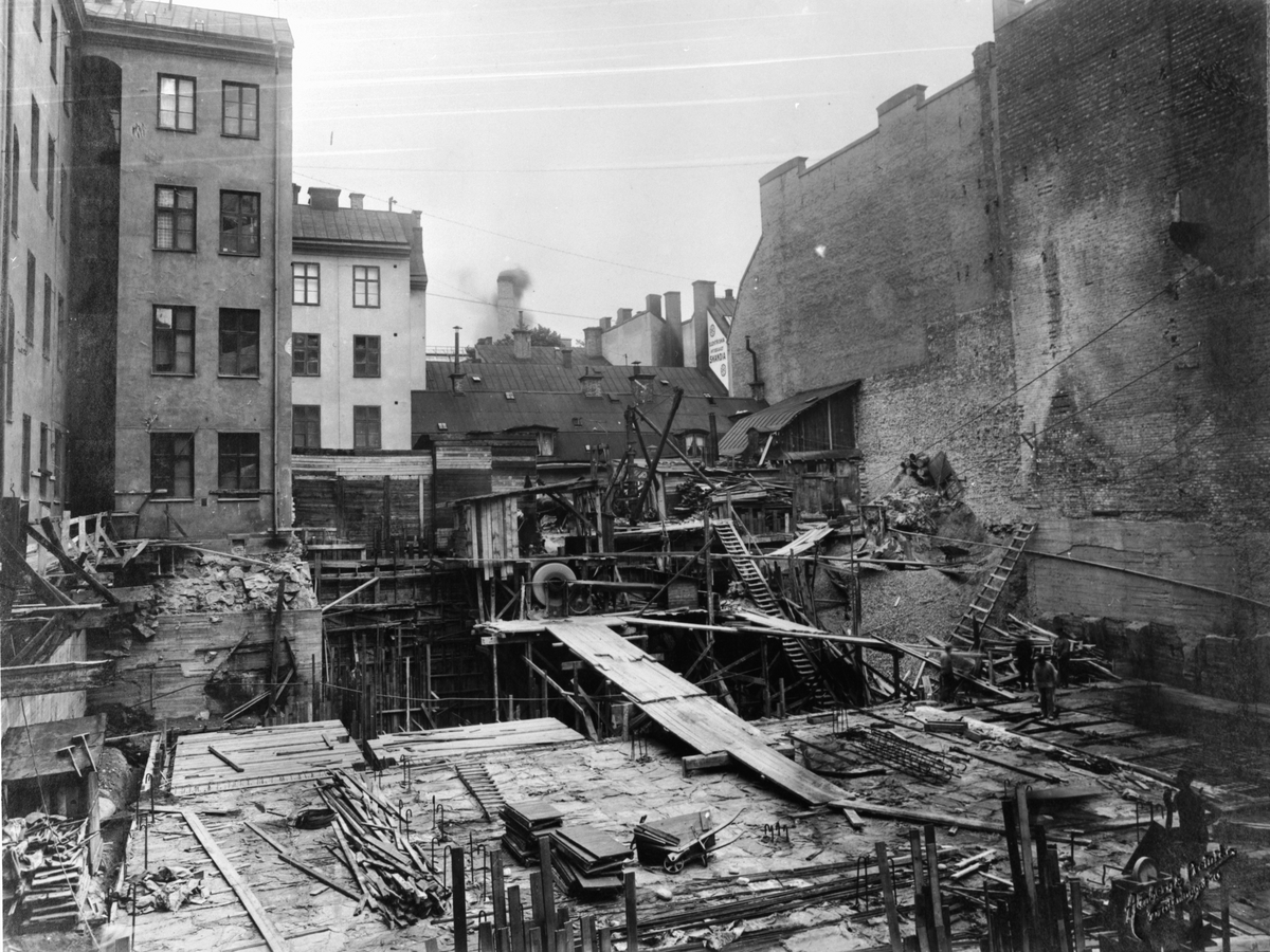 Titel: Byggherre: Byggnadsaktiebolaget Contractor, Stockholm. Grundläggning för Skandiabiografen. Arkitekt E.G. Asplund.