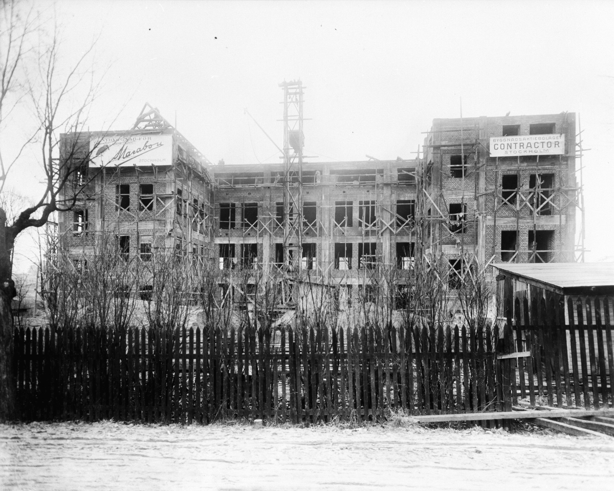 Byggherre: Byggnadsaktiebolaget Contractor, Stockholm. Första fabriksbygget för AB Chokladfabriken Marabou. Arkitekt prof. Ivar Tengbom.