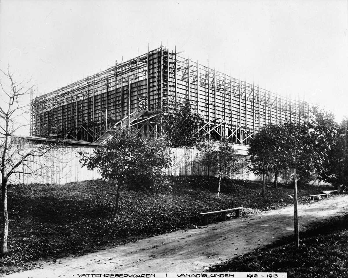 Byggherre: Byggnadsaktiebolaget Contractor, Stockholm. Vattenreservoar i Vanadislunden.