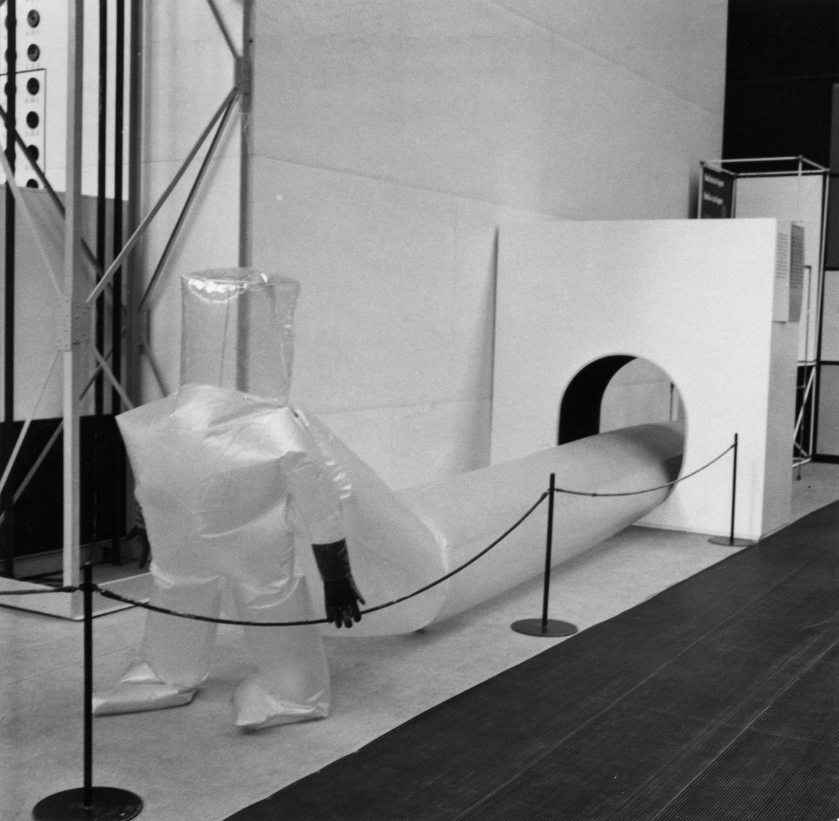 Plastskyddsdräkt ventilerad och uppblåst med fläkt.