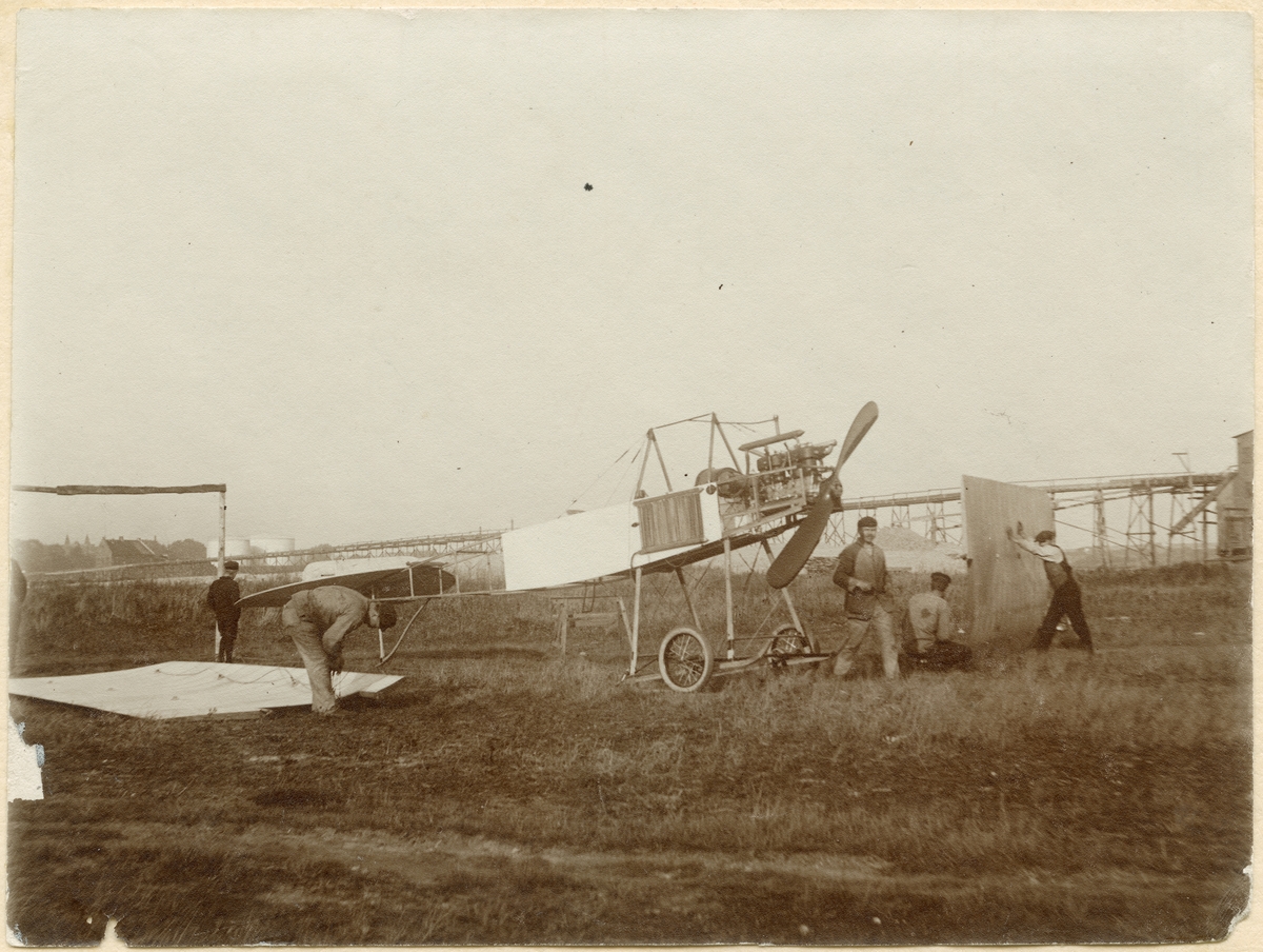 Maskinen nedmotnterad för att fraktas till Ljungbyhed för inflygning, 1911.