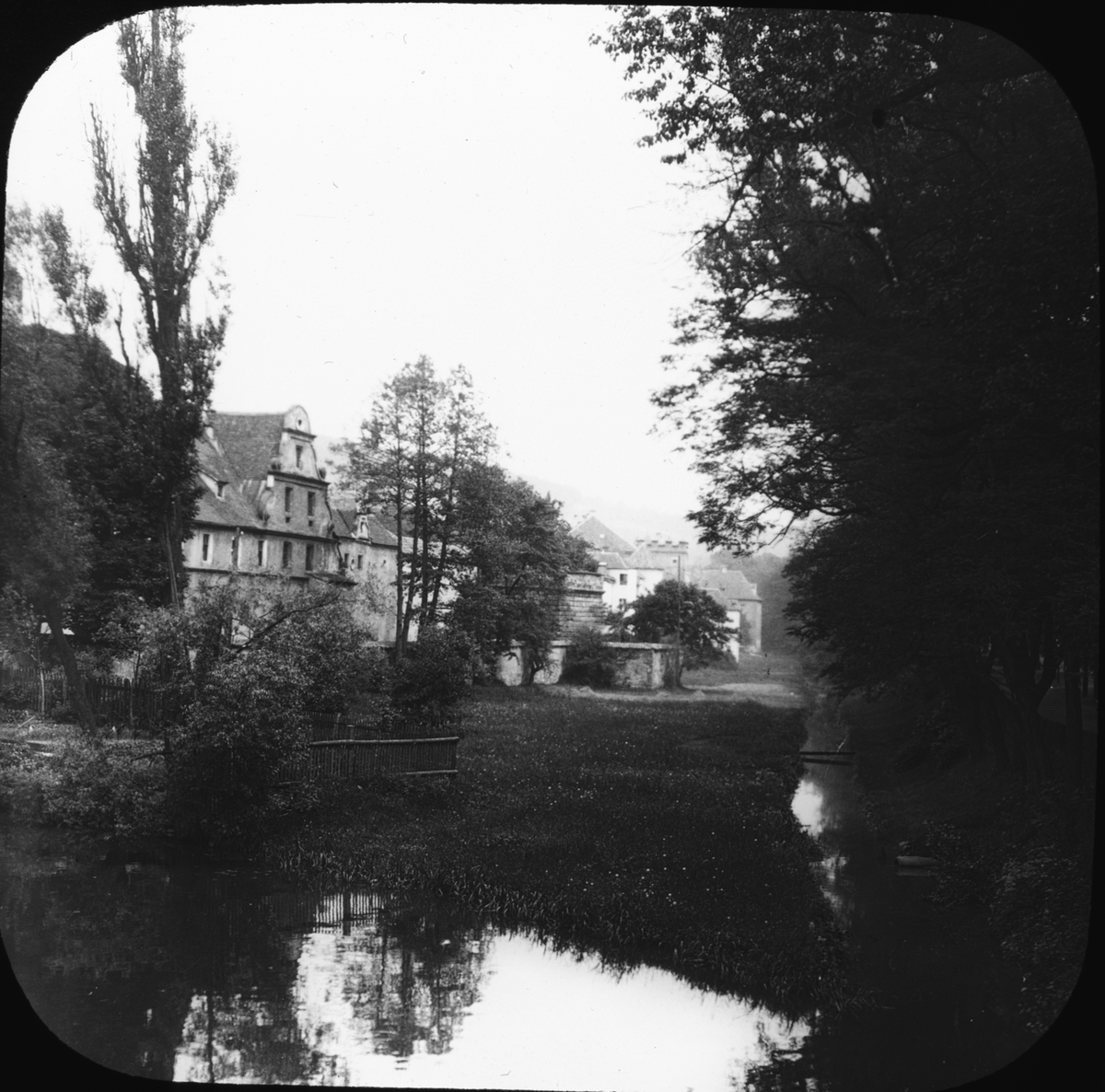 Skioptikonbild med motiv av Amberg vid floden Vils.