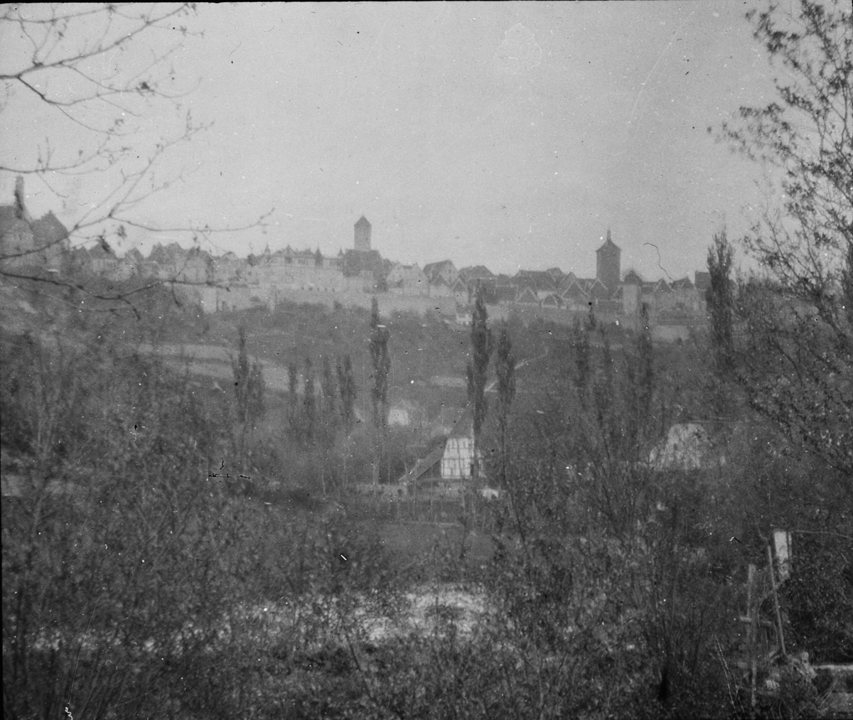 Skioptikonbild med motiv av vy över Rothenburg sett från dalen nedan.