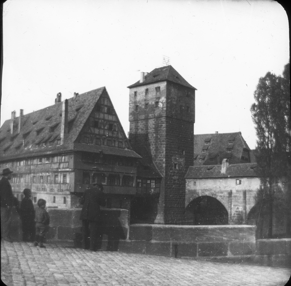 Skioptikonbild med motiv av Weinstadel , Nürnberg.