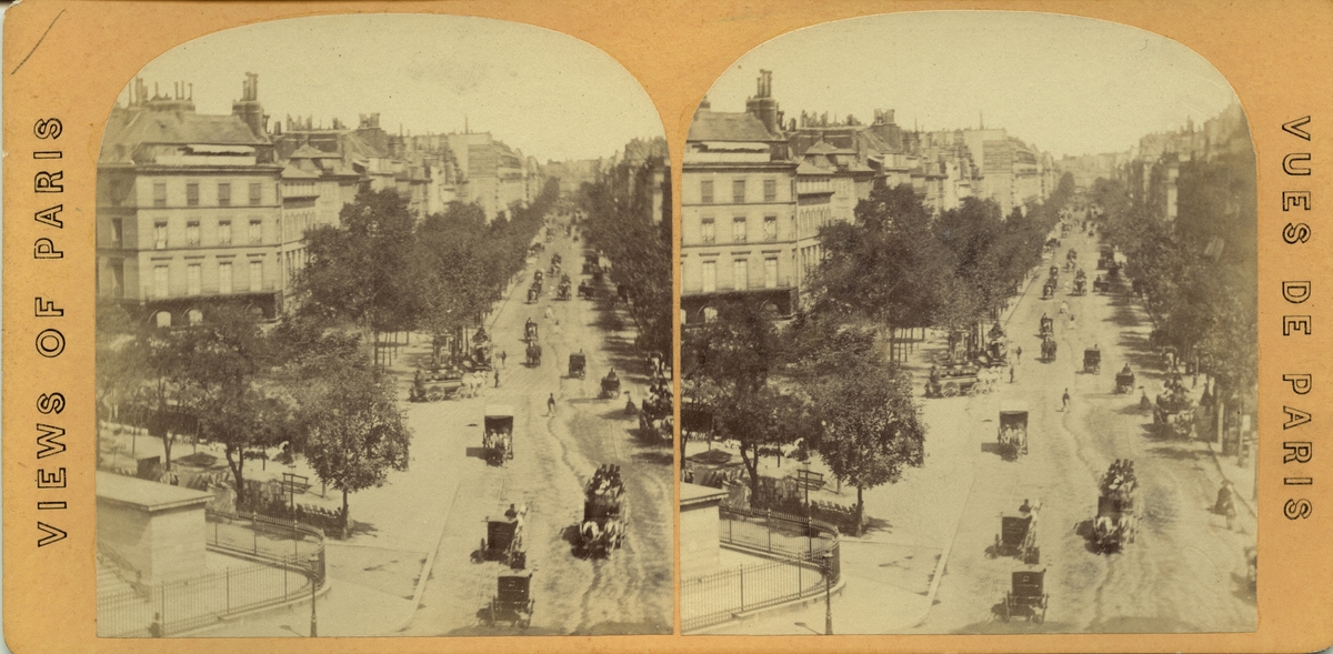 Stereobild med motiv från gatan Boulevard de Capucines, Paris.