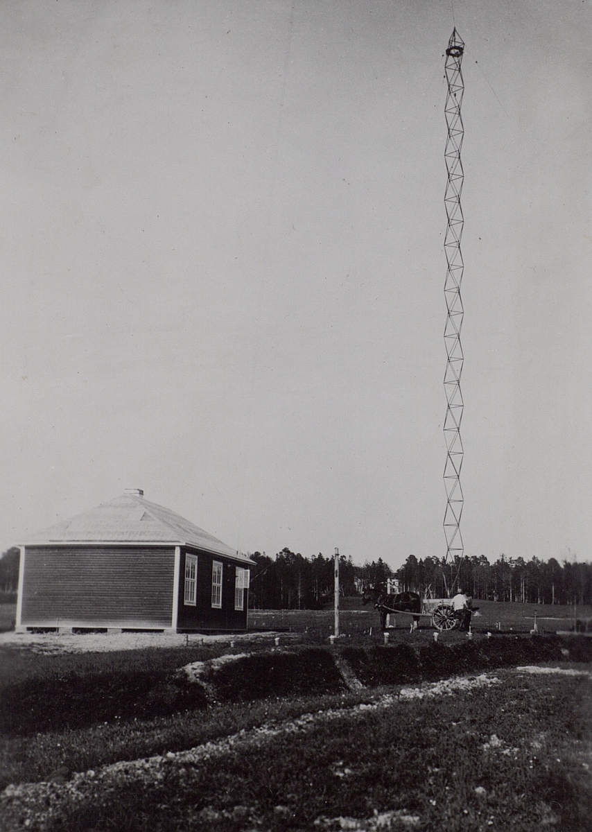Östersunds Rundradiostation, byggd 1926. Antennmasternas höjd 50 meter. Exteriör.