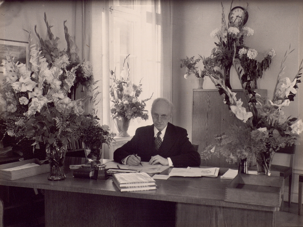 Sigurd Litström. Född 3/9 1881. Foto taget vid hans avgång den 30/9 1947. Byrådirektör.