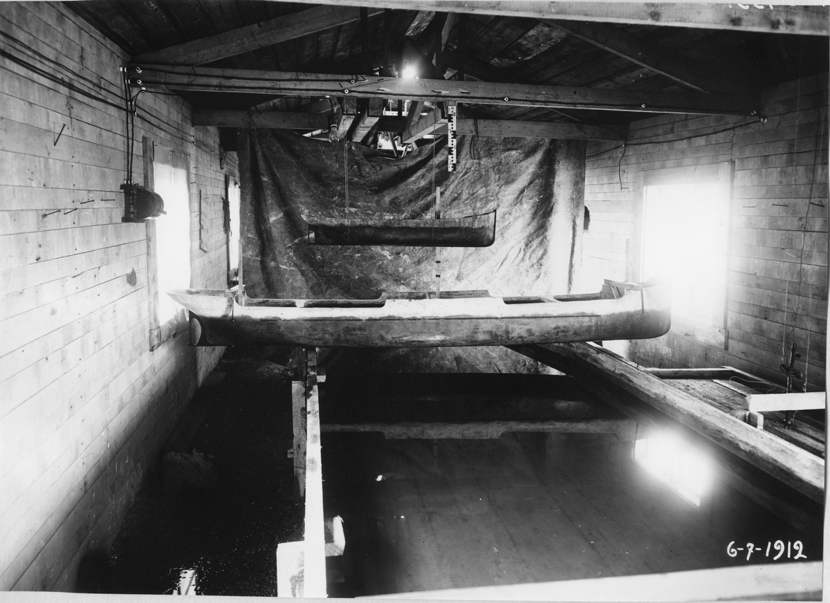 Ombyggnad av Trollhätte kanal, Trollhättan. Modellslussen, båtar.