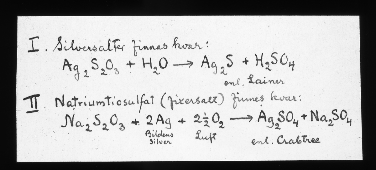 Skioptikonbild från Institutionen för fotografi vid Kungliga Tekniska Högskolan. Använd av professor Helmer Bäckström som föreläsningsmaterial. Bäckström var Sveriges första professor i fotografi vid Kungliga Tekniska Högskolan i Stockholm 1948-1958.