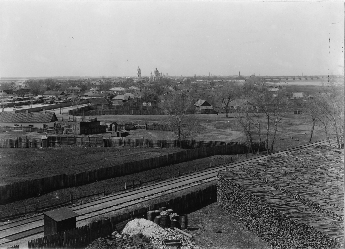 Förstaden Krjokow med bron över Dnjepr rill Krementschug, Pultava, Ryssland.