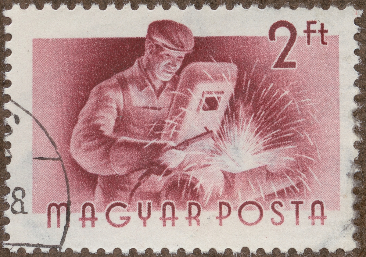 Frimärke från Ungern, 1955. Motiv av Ungersk Metallsvetsare "Yrkes Serie"
