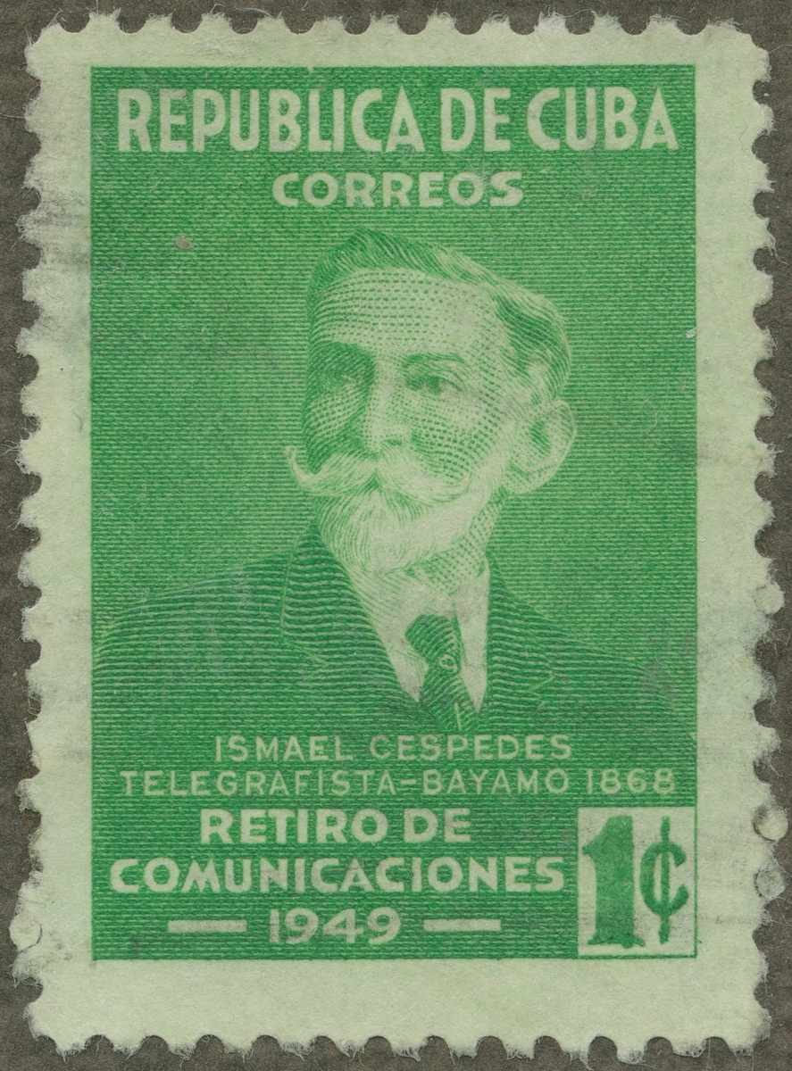 Frimärke från Kuba, 1949. Motiv av Ismael Cespedes: Telegrafchef på Kuba 1868
