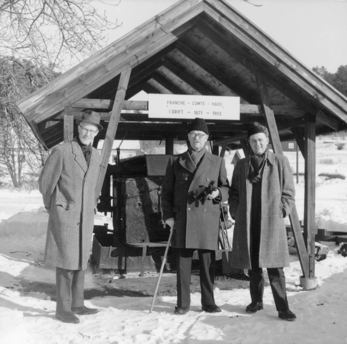 Tre män framför Härden.