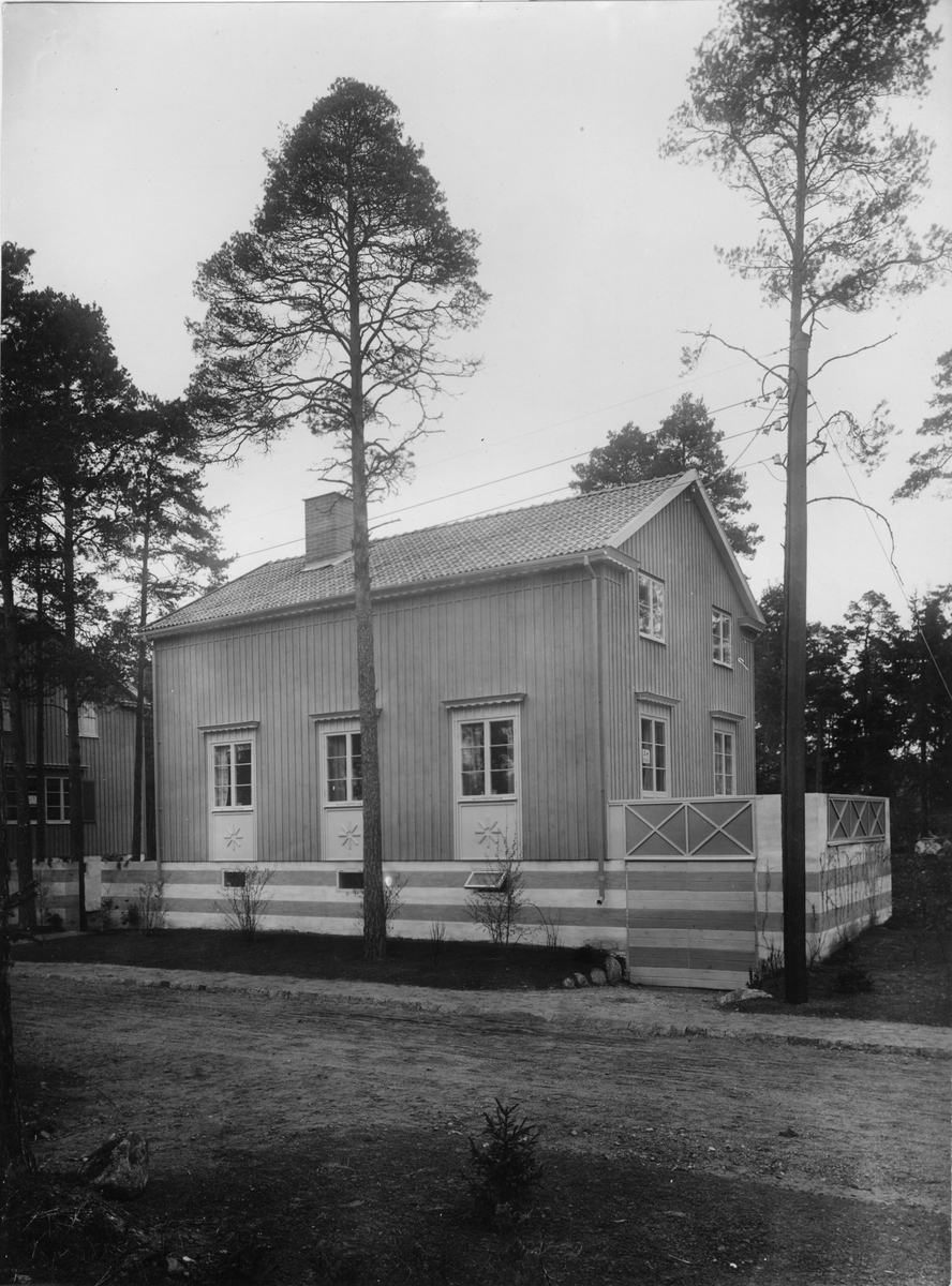 Bygge och Bo-utställningen i Äppelviken 1927. Hus nr 24 på sex tum och kök är ritat av Enst Spolén.