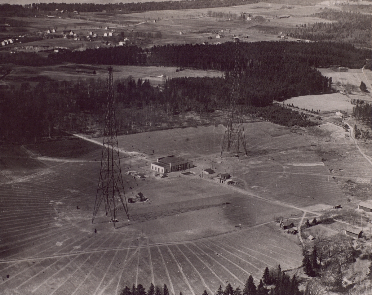 Motala. Flygfoto av Motala rundradiostation 1930.
