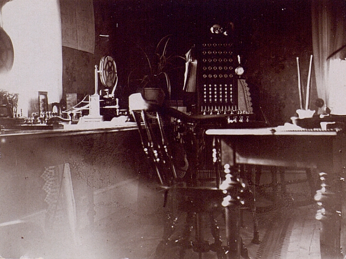 Ånge telefonnät och stationer omkr. 1900. Telefonstation, interiör.