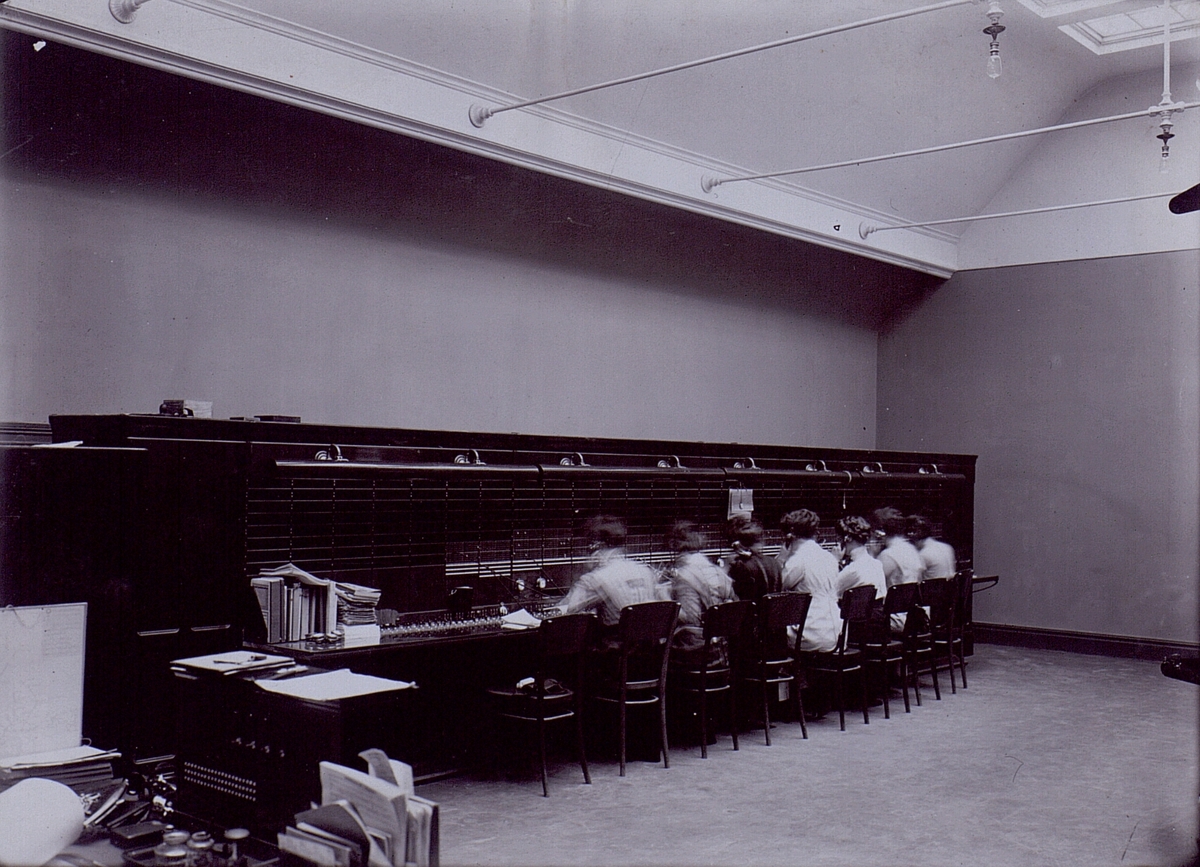 Kristianstads telefonstation Omkring år 1910. Telefonsal.