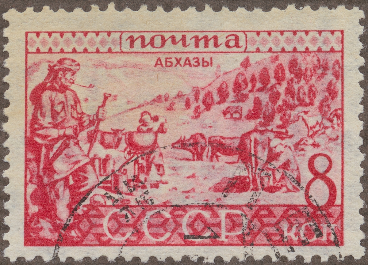 Frimärke från Ryssland, 1933. Motiv av mjölkning och separering. "Ryska Abkhaser".