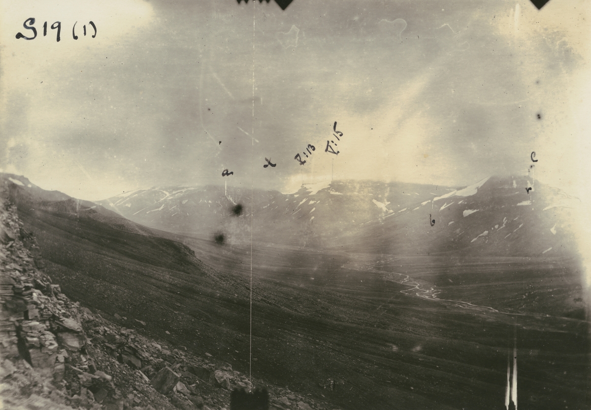 Fotografi från expedition till Spetsbergen 1920. Vy över bergslandskap.