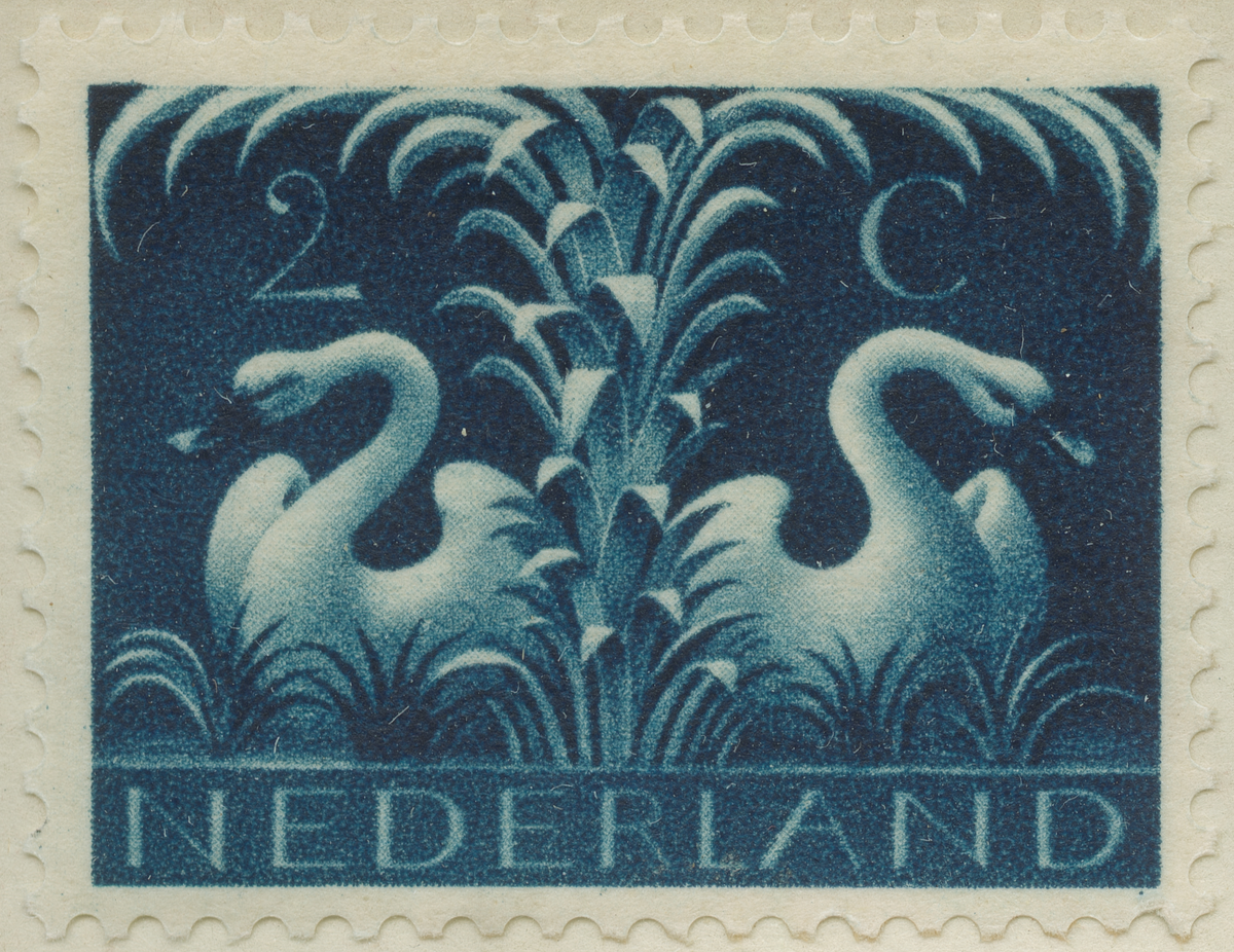 Frimärke från Nederländerna, 1943. Motiv av Svanar Symbolbild