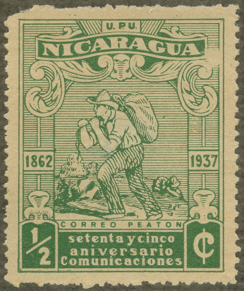Frimärke från Nicaragua, 1937. Motiv av Gångpost i Nicaragua Posten 75 år: 1862-1937
