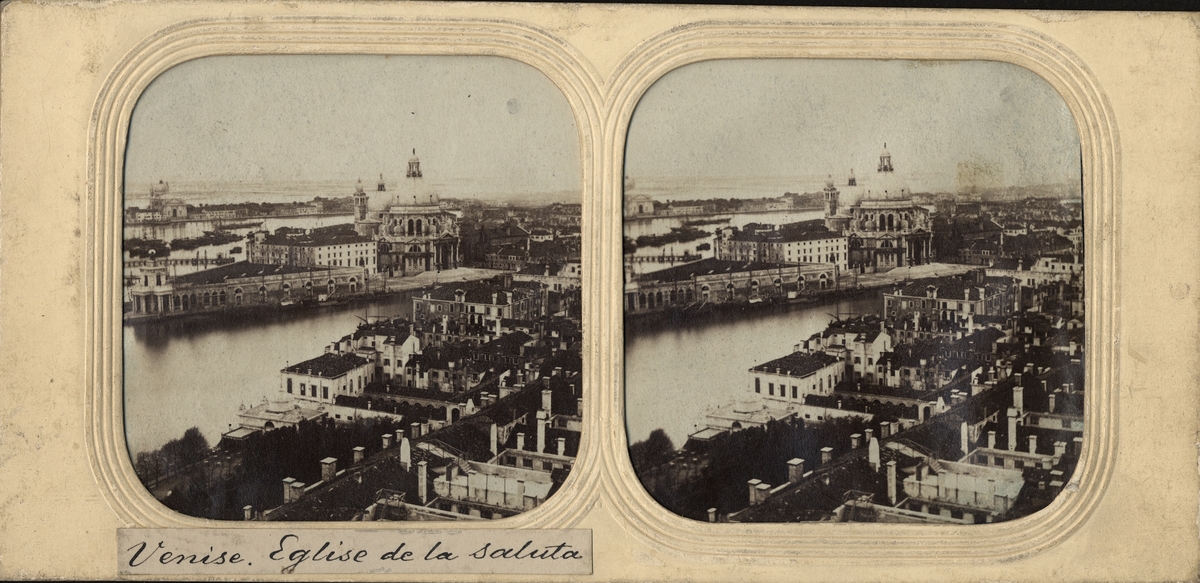 Stereobild, vy över Santa Maria della Salute kyrkan, Venedig.