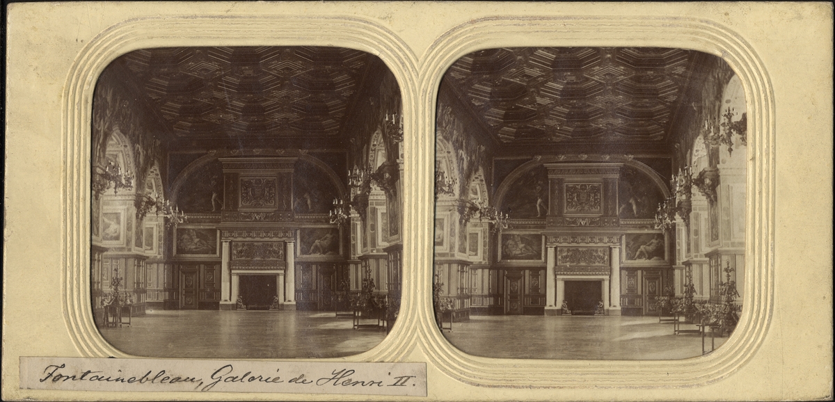 Stereobild, interiör i Galerie Henri II i Fontainebleau.