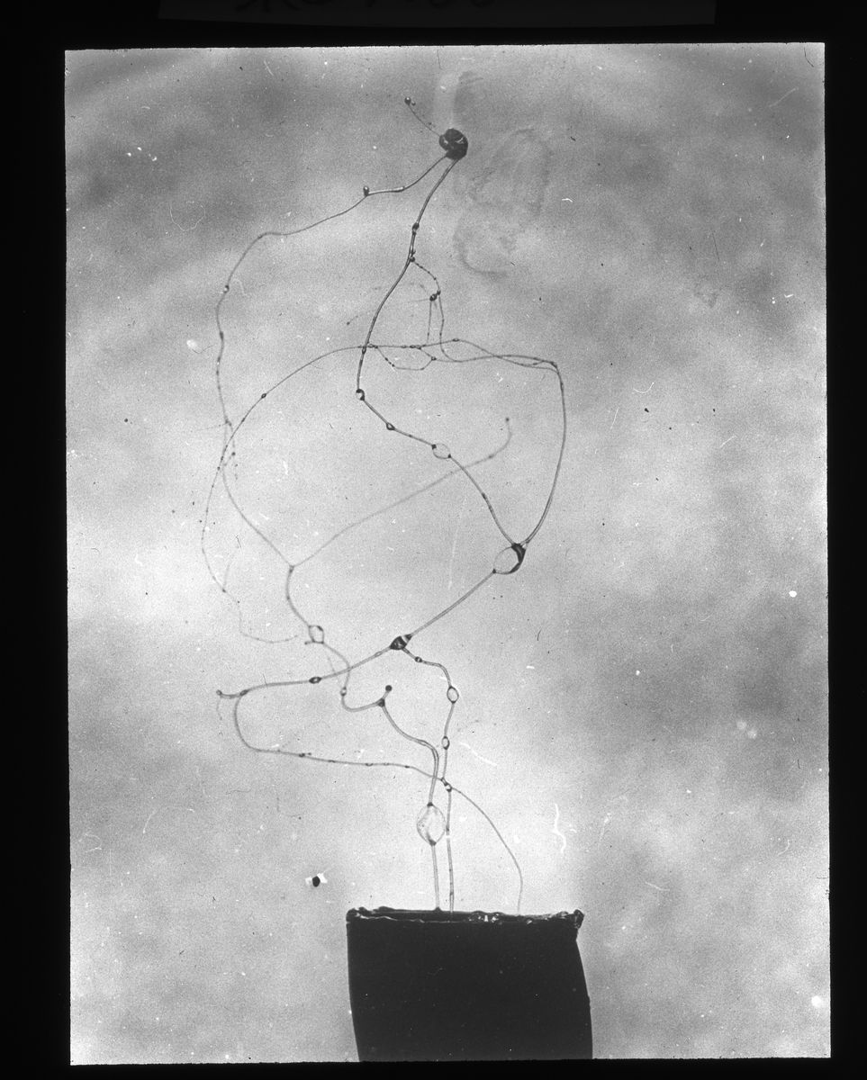 Skioptikonbild från Institutionen för fotografi vid Kungliga Tekniska Högskolan. Använd av professor Helmer Bäckström som föreläsningsmaterial. Höghastighetsfotografi. Bubbla som spricker.