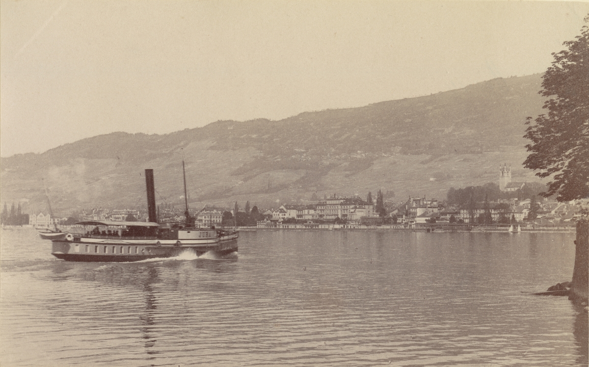 Ur album: Utländska Resan 1890. Ångbåt på vattnet vid Veveye.