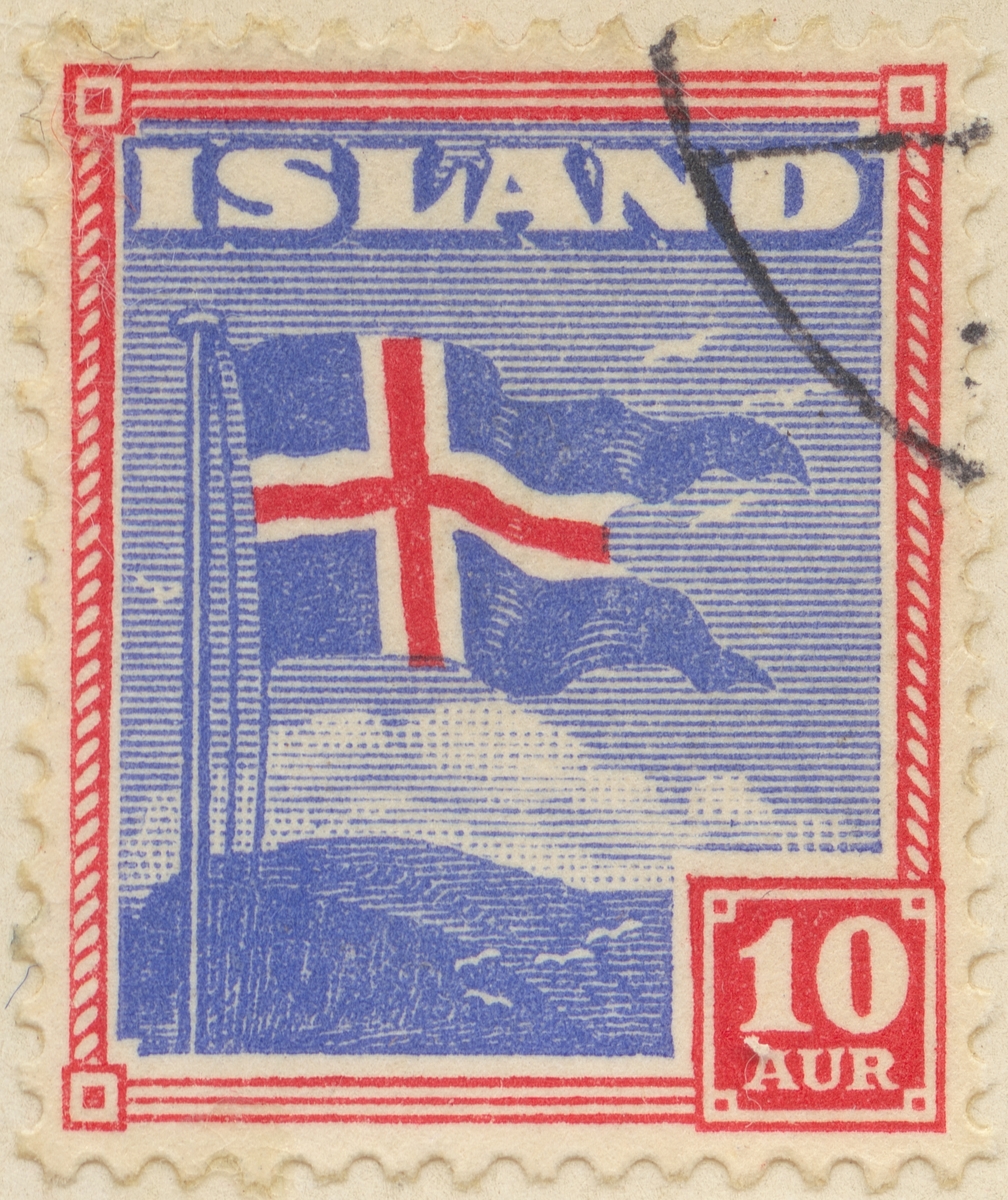 Frimärke från Island, 1938. Motiv av Islands Flagga
