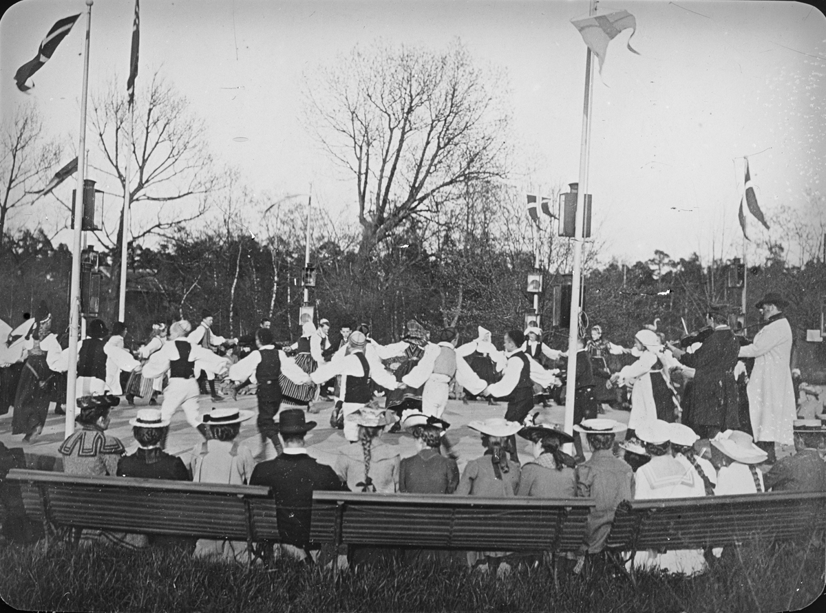 Projektionsbild med motiv från Skansen. Midsommarfirande?