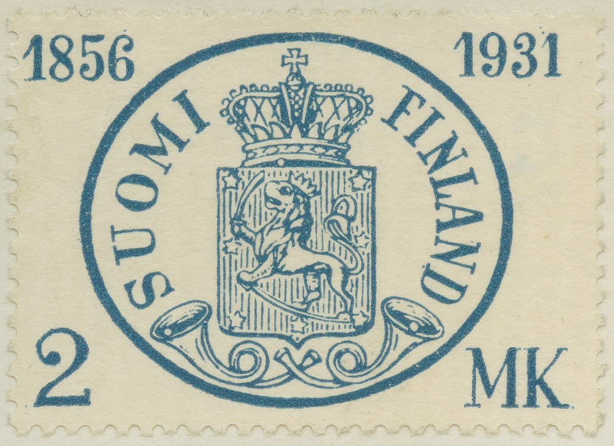 Frimärke från Finland, 1931. Motiv av Posthorn Finlands Vapen Finlands Frimärken 75 år 1856-1931.