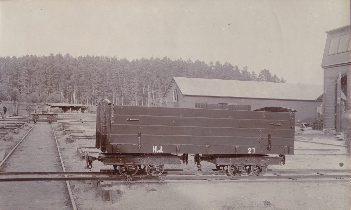 Tågvagn. Boggiegodsvagn. Ur album för Vagnfabriks Aktiebolaget i Södertälge.