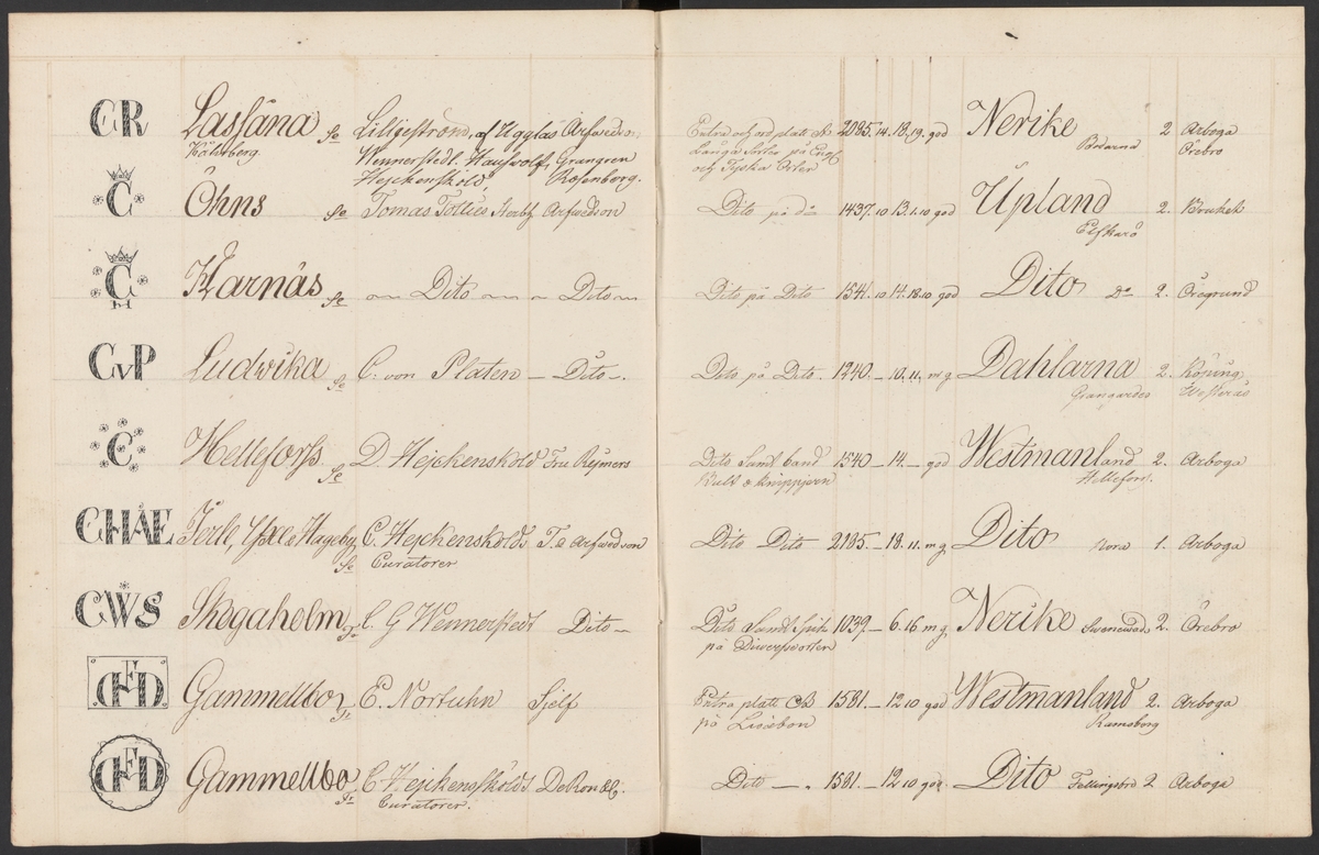 Titel: Stämpelbok vid Stockholms stora metall- och järnvåg inrättad år 1813. Handskrift. Ur Carl Sahlins bergshistoriska samling.