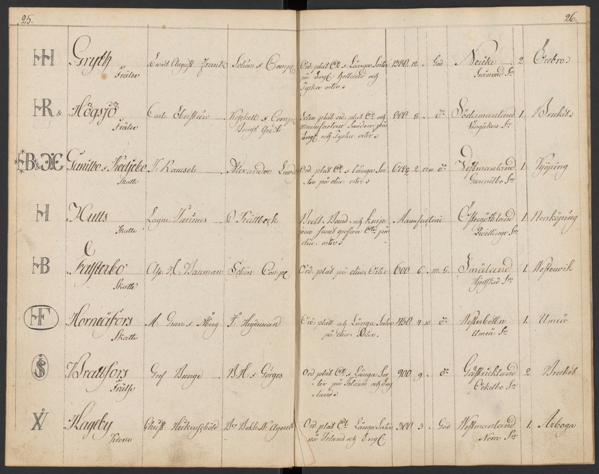 Titel: Stämpelbok vid Stockholms stora järn- och metallvåg inrättad år 1794. Handskrift. Ur Carl Sahlins bergshistoriska samling.