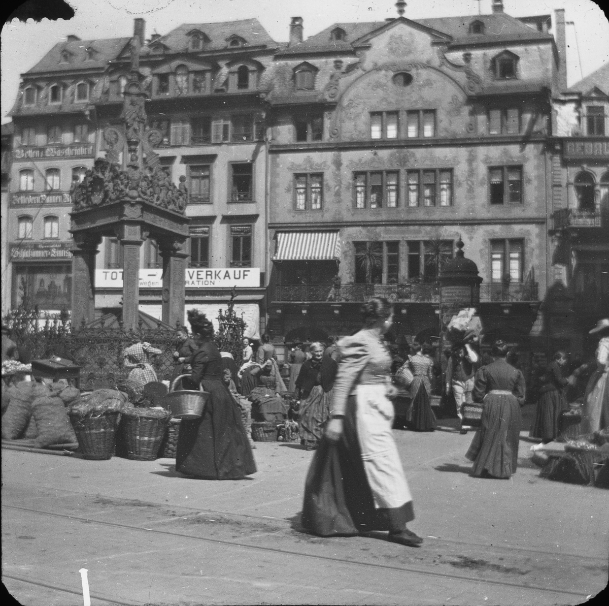 Skioptikonbild med motiv från marknadsplats i Mainz.