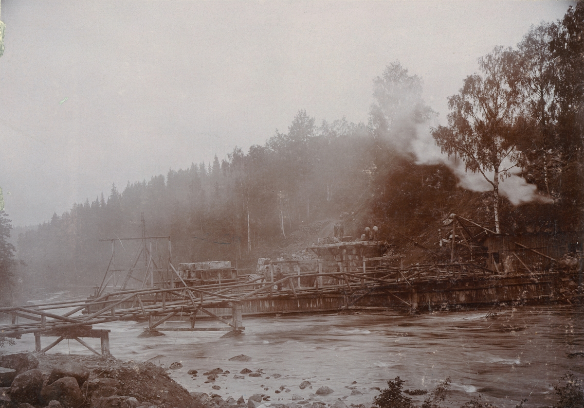 Dammbyggnad vid Brattfors bruk i Värmland.