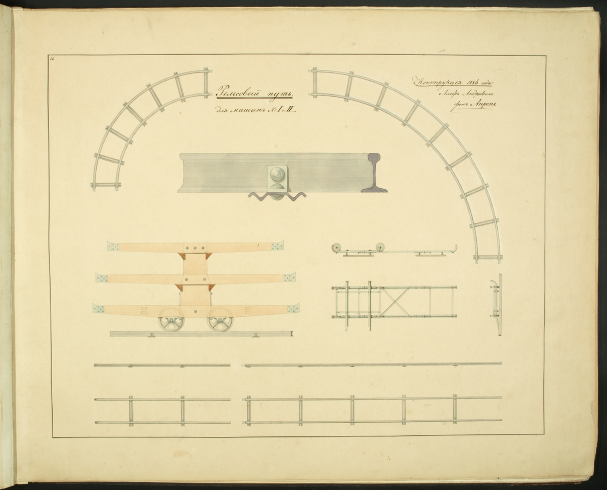 Skiss på ryska , ur boken med ritningar mm 1868-1887, av den svenske torvmaskinkonstruktören Aleph Anrep.