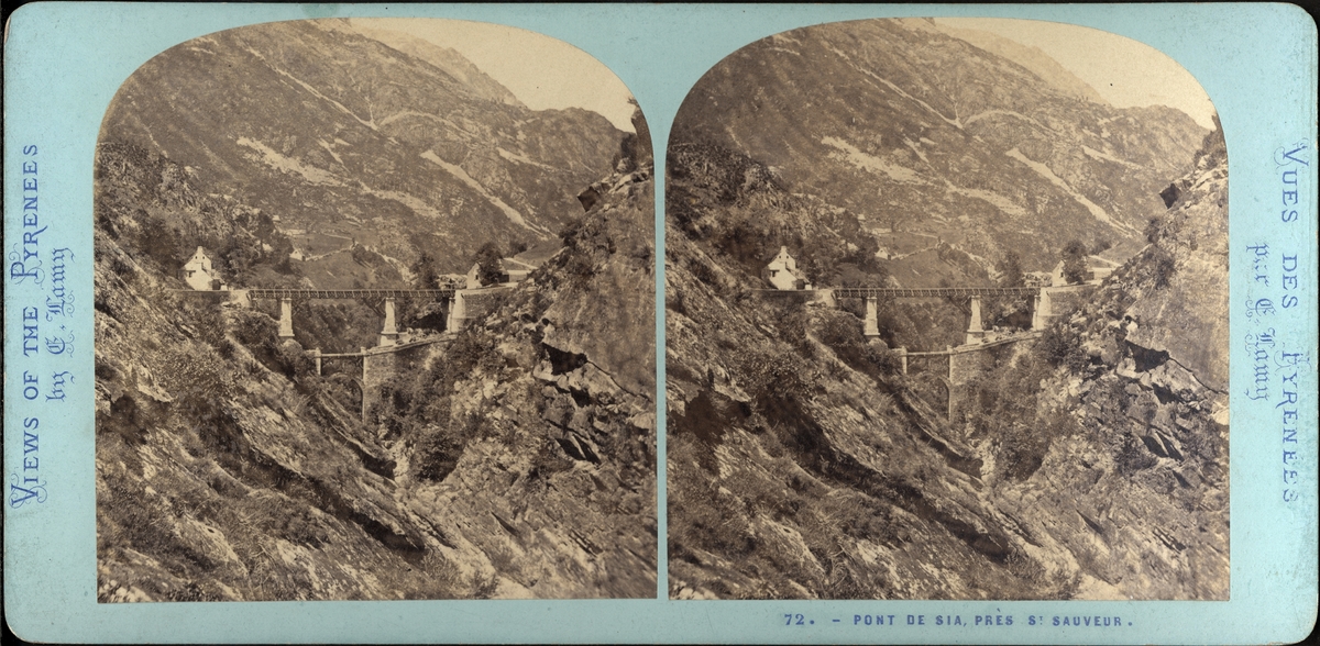 Stereobild av bro i St. Saveur, Pyrenéerna.