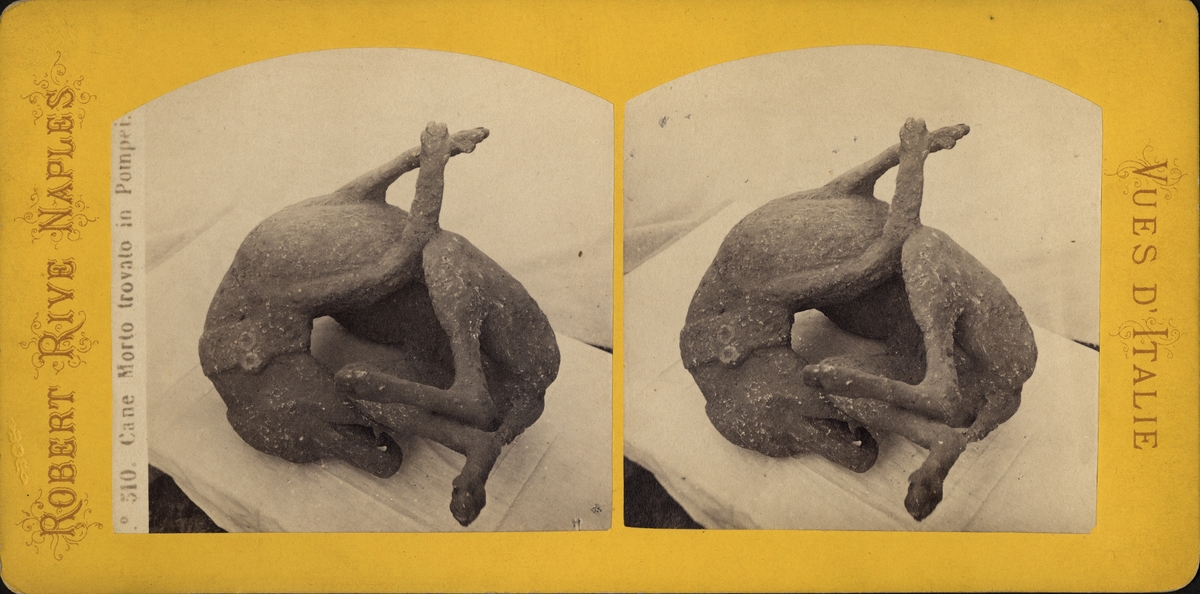 Stereobild av avgjutning av hund, vulkanoffer, Pompei.