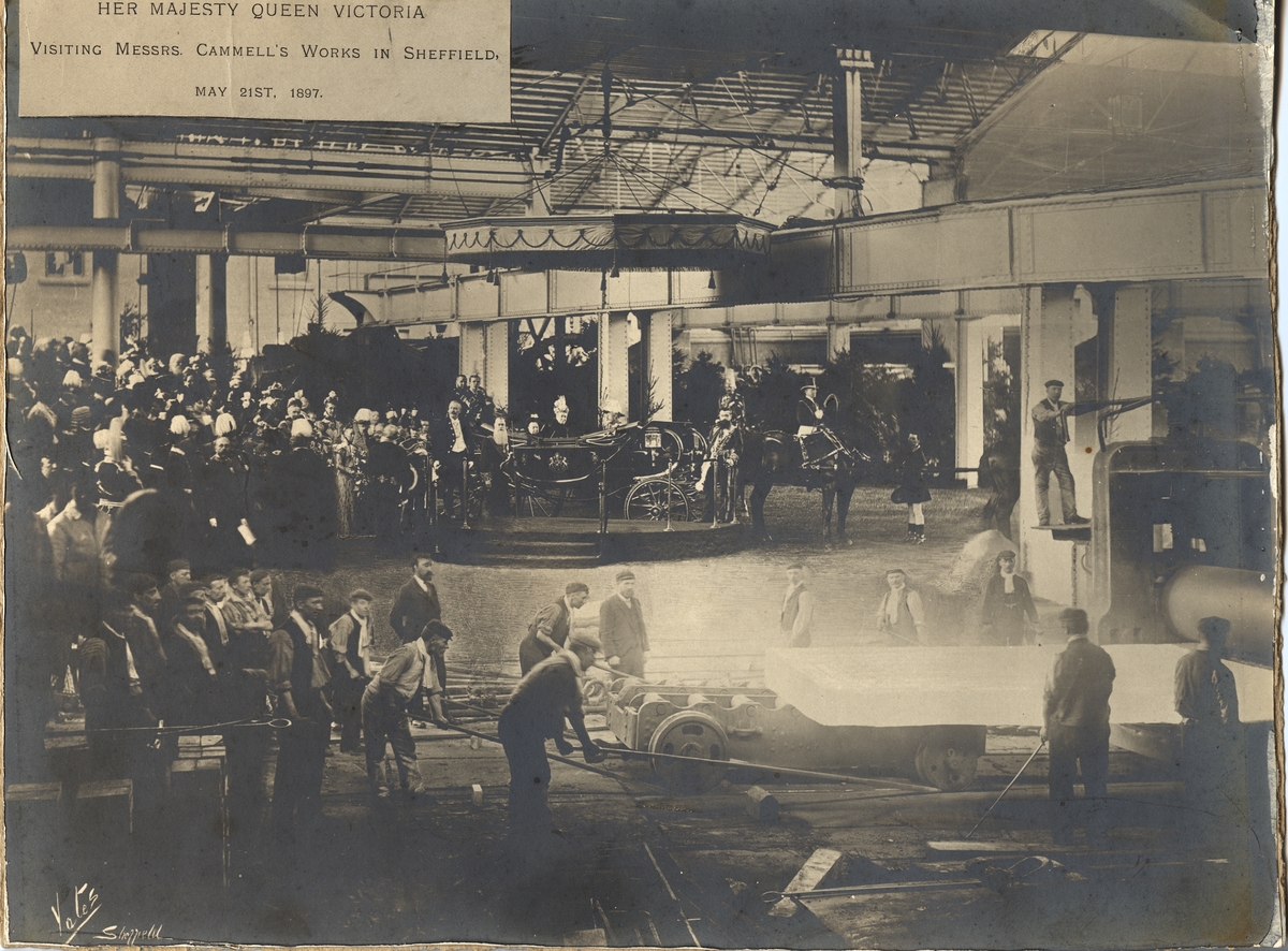 "Her Majesty Queen Victoria, visiting Messrs Cammell's work in Sheffield, may 21st 1897".