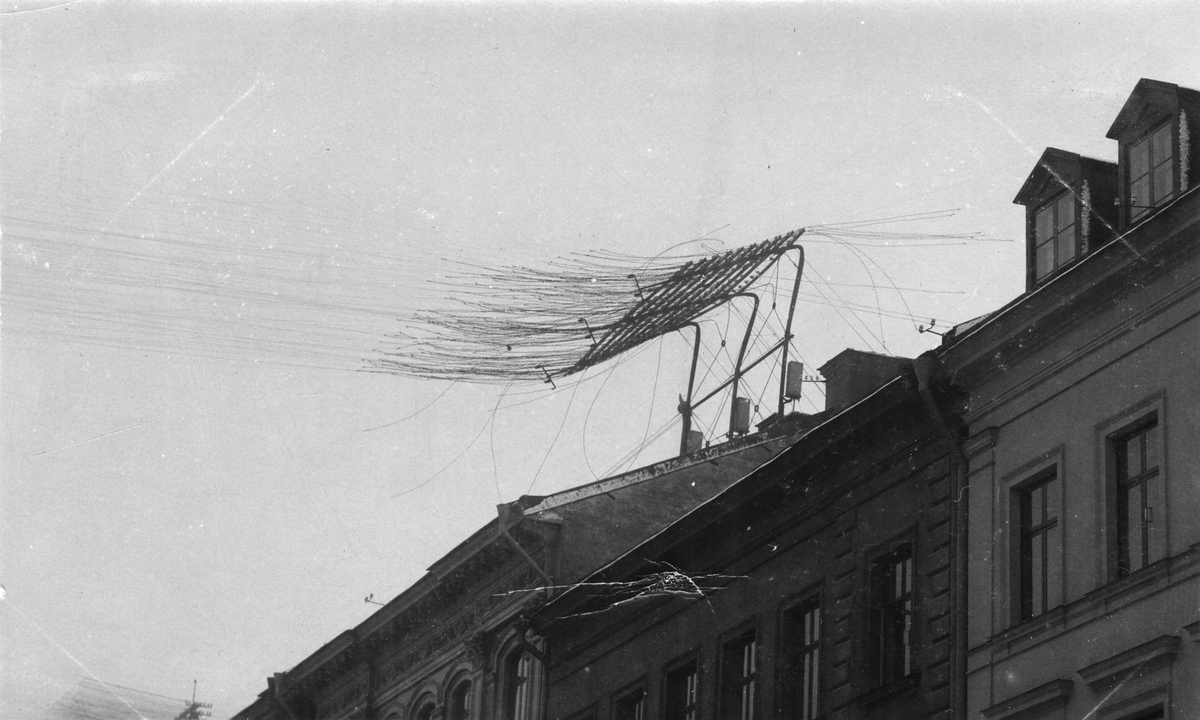 Telefongalge i Stockholm, nedtryckt av snöfall 1896.